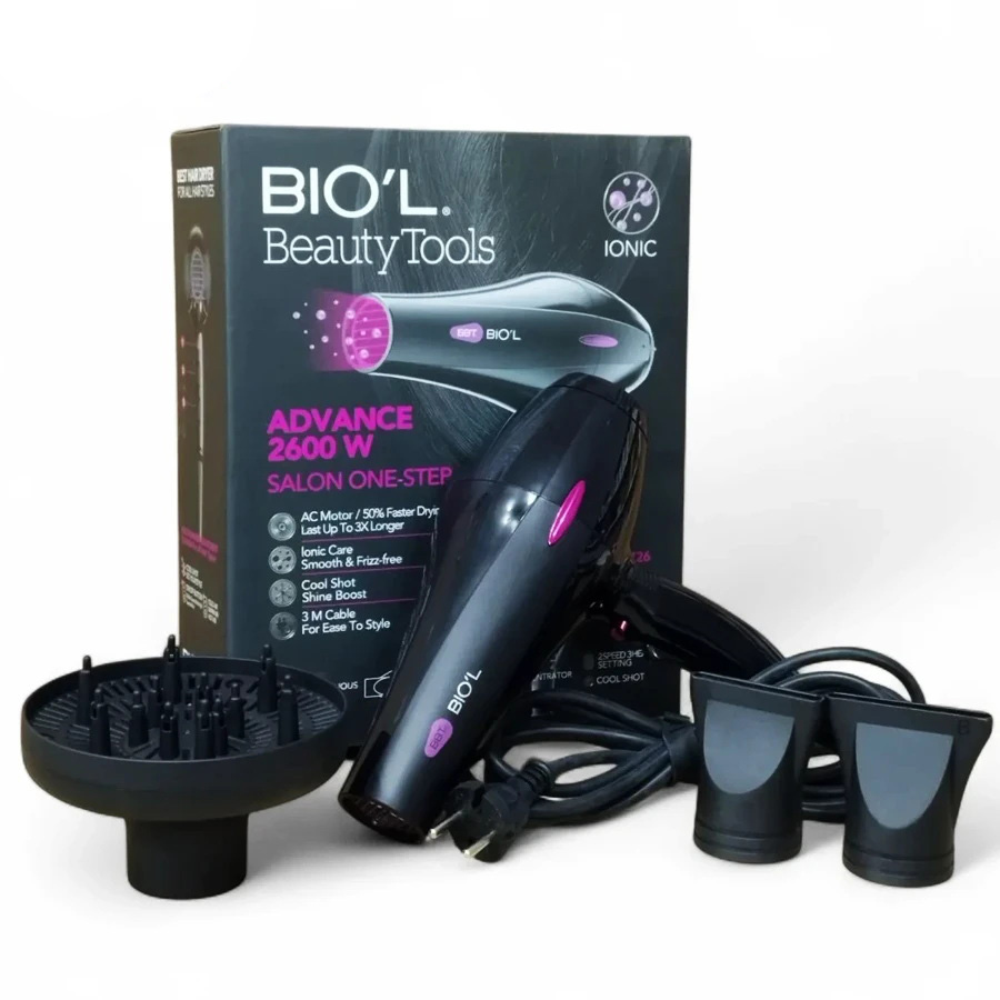 سشوار حرفهای بیول مدل BHD726 با توان 2600 وات و موتور AC، خشککردن سریع و قدرتمند را برای انواع مو فراهم میکند. فناوری Ionic باعث کاهش وز و افزایش درخشش میشود. این دستگاه دارای سه سری کاربردی شامل دو متمرکزکننده و یک دیفیوزر تخصصی برای موهای فر است. با ۲ سرعت، ۳ درجه حرارت و قابلیت Cool Shot، امکان حالتدهی حرفهای در خانه یا سالن را فراهم میسازد. کابل ۳ متری نیز استفاده از سشوار را بسیار راحتتر میکند.