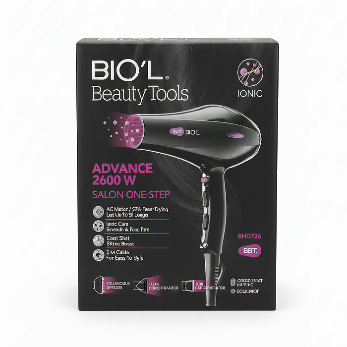 سشوار حرفهای بیول مدل BHD726 با توان 2600 وات یک انتخاب کامل برای استفاده خانگی و سالنی است. این دستگاه با موتور قدرتمند AC عملکردی بسیار سریع، باددهی بالا و عمر طولانی دارد و میتواند موها را تا ۵۰٪ سریعتر نسبت به سشوارهای معمولی خشک کند. فناوری Ionic ضمن کاهش وز و الکتریسیته ساکن، درخشندگی و نرمی مو را افزایش میدهد و نتیجهای صاف، براق و بدون فریز ارائه میدهد.