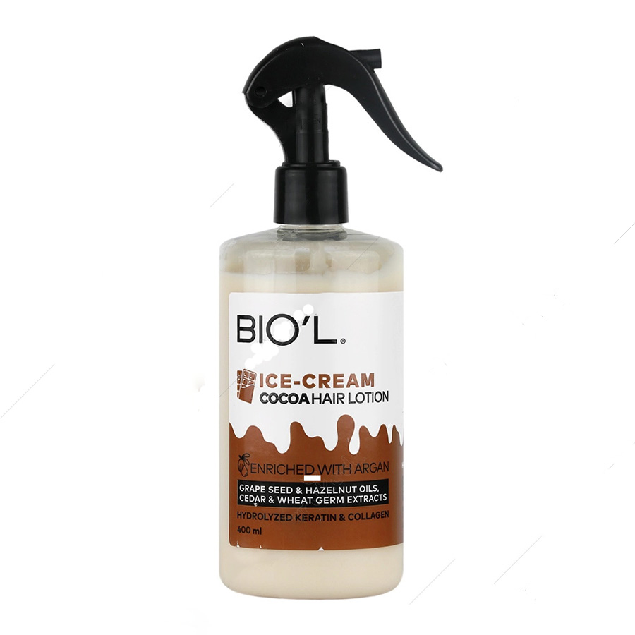 لوسیون مو بستنی شکلاتی بیول با روغن های (آرگان، فندق و هسته انگور) و عصاره های گیاهی مختلف (عصاره جوانه گندم و سدر) فرآوری شده که این ترکیبات در ترمیم و محافظت از موهای نازک و آسیب موثر واقع می شوند. به علاوه پروتئین هیدرولیز شده ابریشم و کلاژن به همراه کراتین در لوسیون مو بستنی شکلاتی بیول از تارهای مو در برابر آسیب های محیطی محافظت کرده و سبب افزایش استحکام ساختار فولیکول مو می گردند.