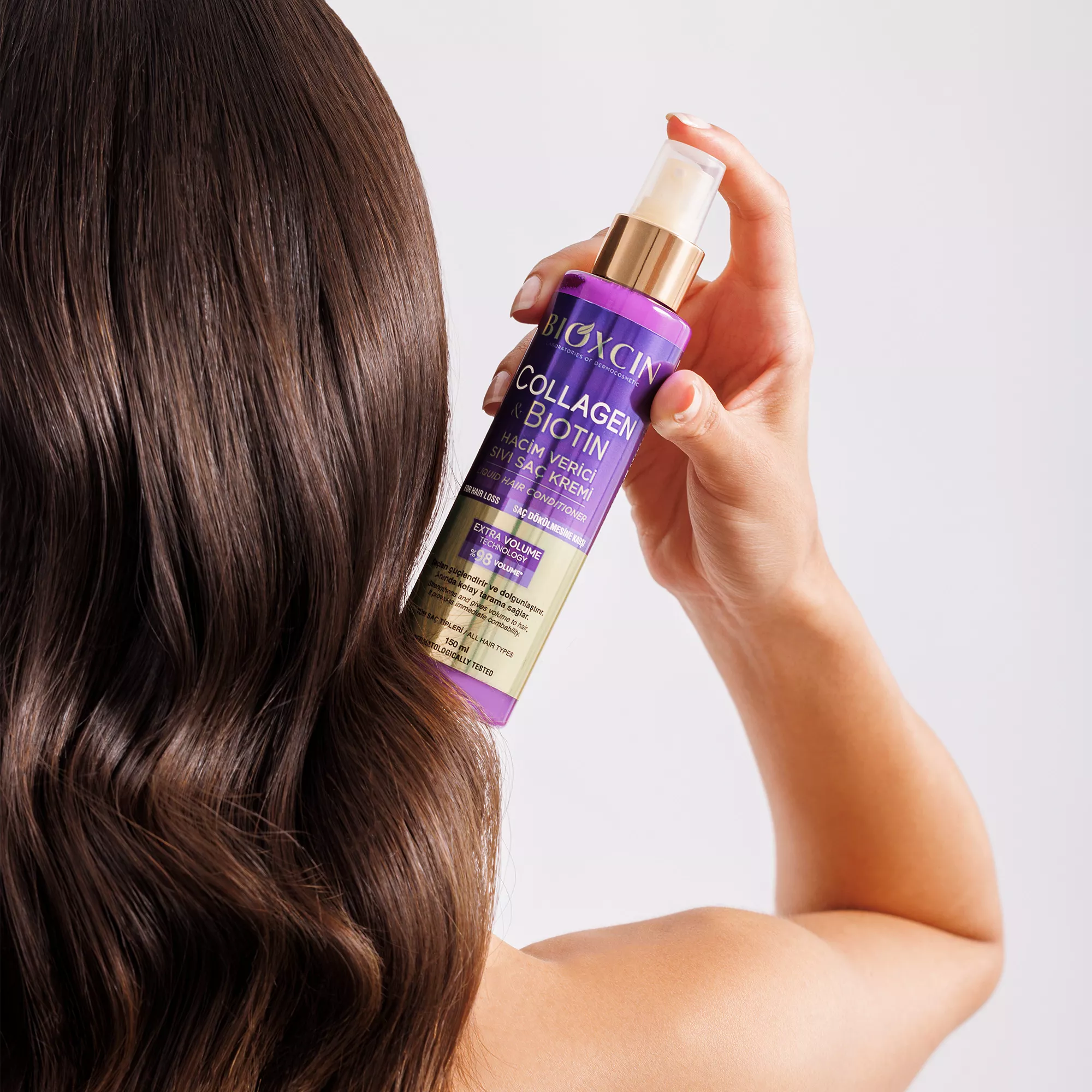 کرم موی کلاژن و بیوتین حجمدهنده بیوکسین یک محصول تخصصی برای موهای نازک، ضعیف و کمپشت است. این کرم به صورت محلول مایع طراحی شده و پس از شستوشوی موها روی موهای مرطوب اسپری یا پخش میشود و نیازی به آبکشی ندارد. فرمولاسیون پیشرفته آن با ترکیب کلاژن هیدرولیز شده، بیوتین، پپتایدهای فعال و کمپلکس گیاهی اختصاصی BioComplex B11 باعث تقویت ریشه و ساقه مو شده و به موها ظاهری پرپشت، شاداب و سالم میبخشد. کلاژن به افزایش استحکام و ضخامت تار مو کمک کرده و از شکنندگی جلوگیری میکند.